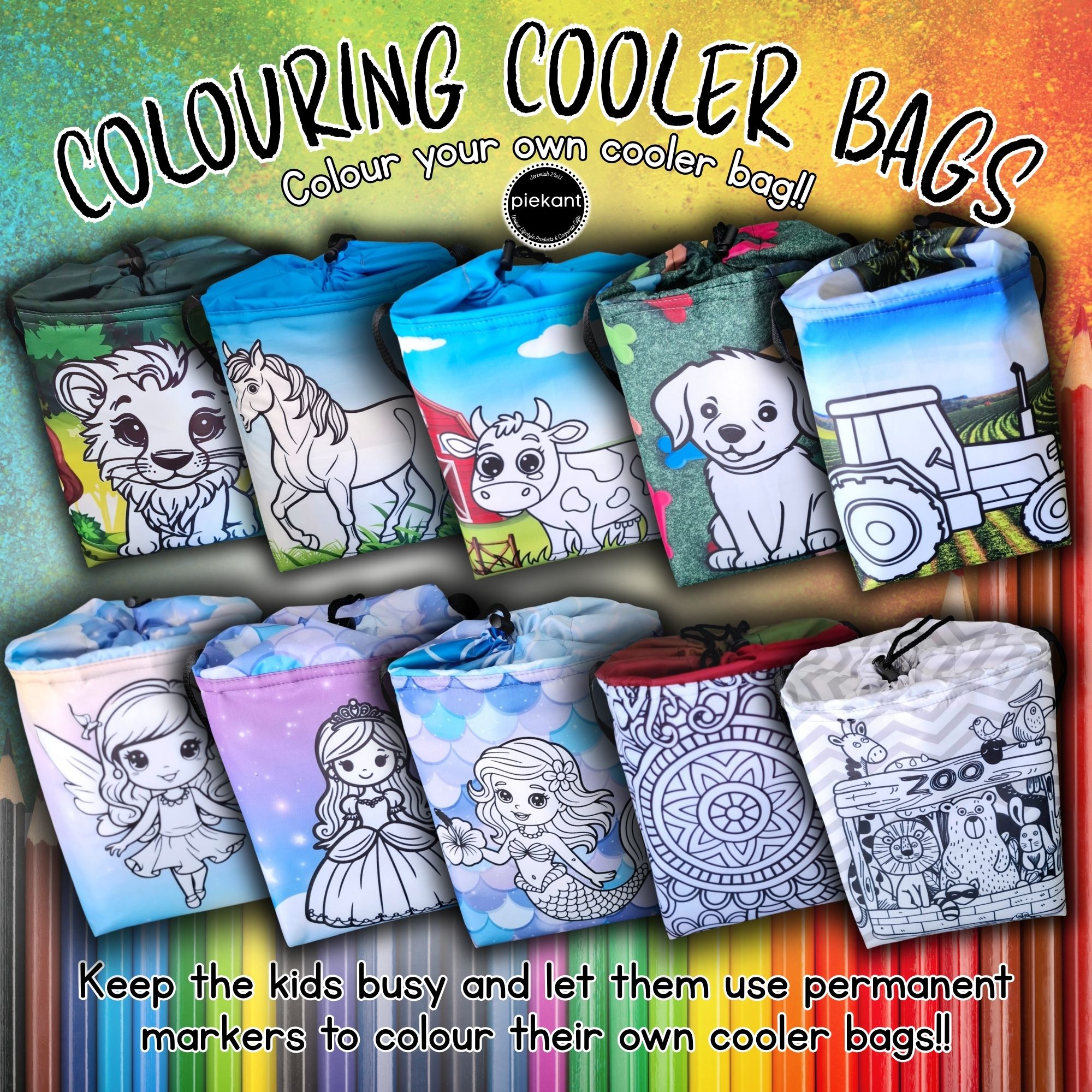 | Colouring Cooler Bags | Lion, Horse, Cow, Dog, Wild Animals, Tractor, Fairy, Princess, Mermaid, Mandala |
